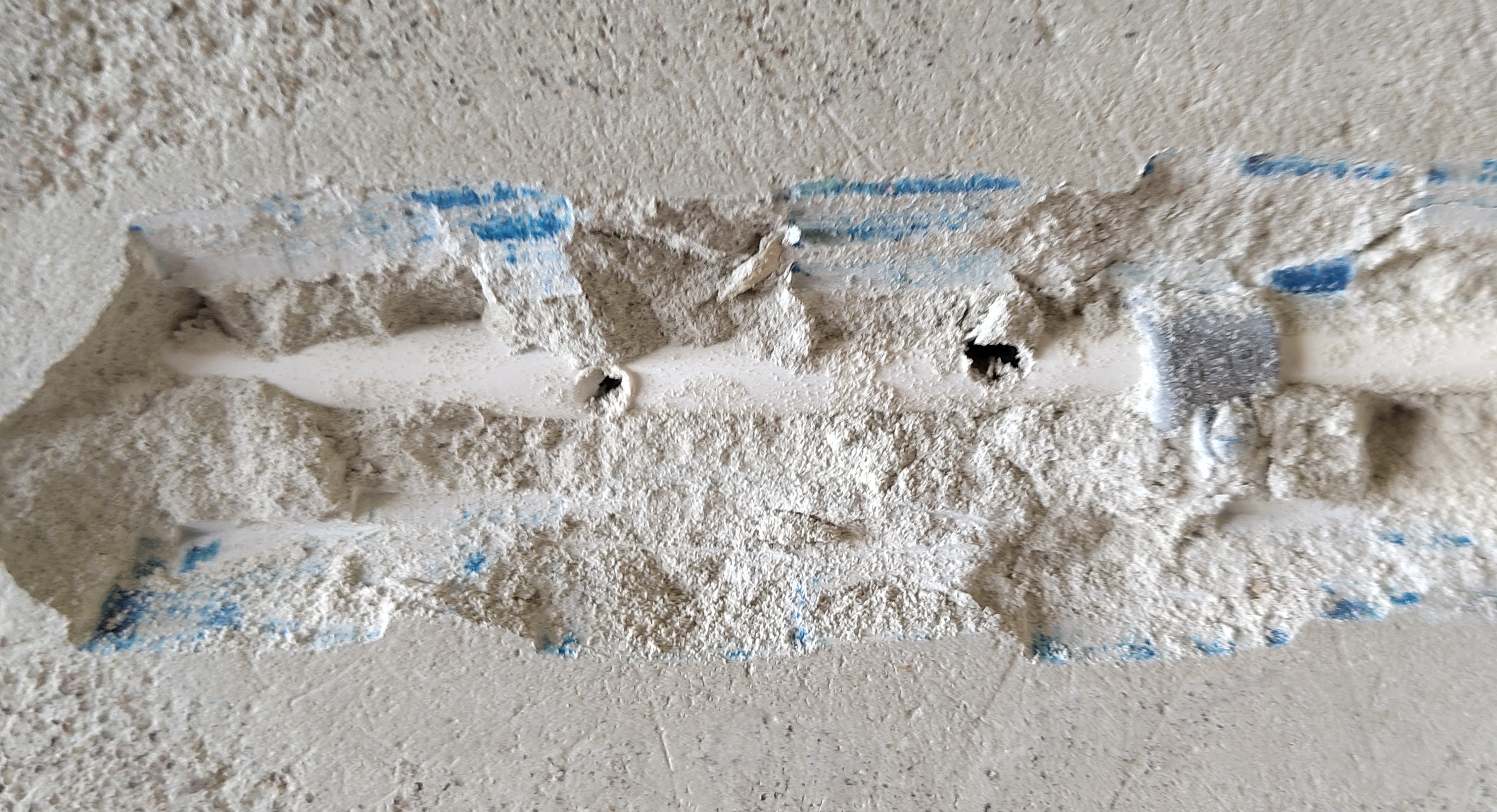 - plastering, filling in holes