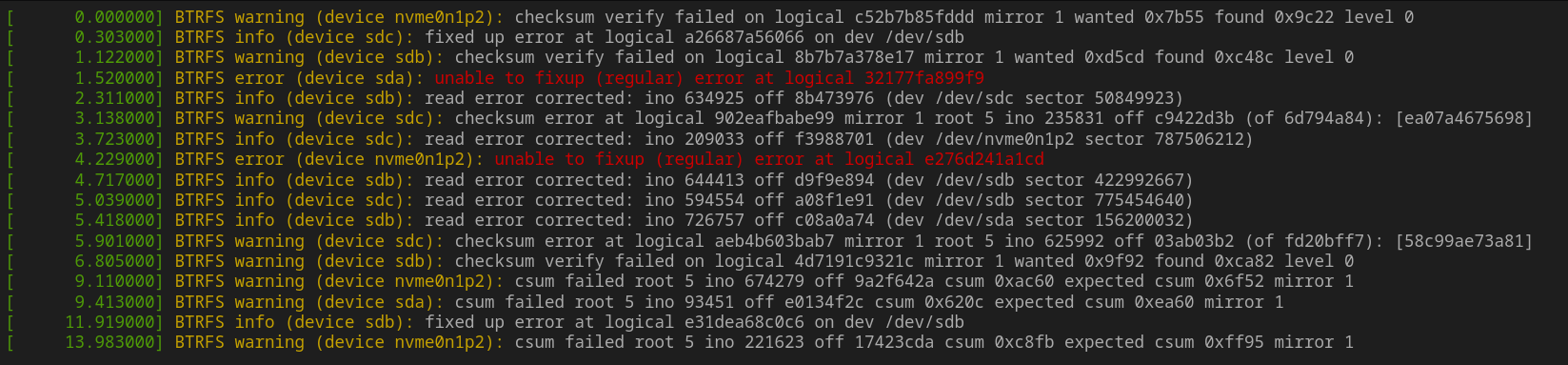 BTRFS disk errors to fall asleep to